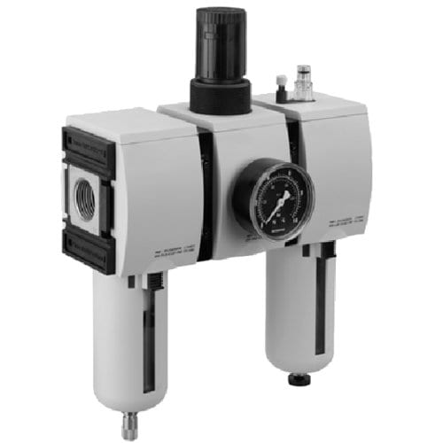 Montagem modular: válvula reguladora de pressão, filtro, lubrificador, válvula de preenchimento, válvula de bloqueio